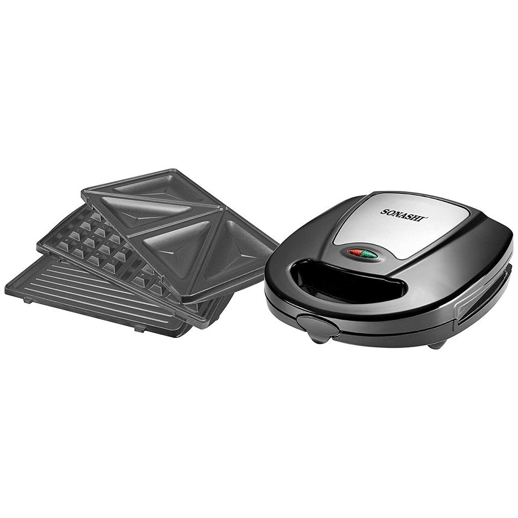ضغط البانيني متعددة الإستعمالات من سوناشي Sonashi Panineuse Et Gaufrier 3en1 760W SSM-861
