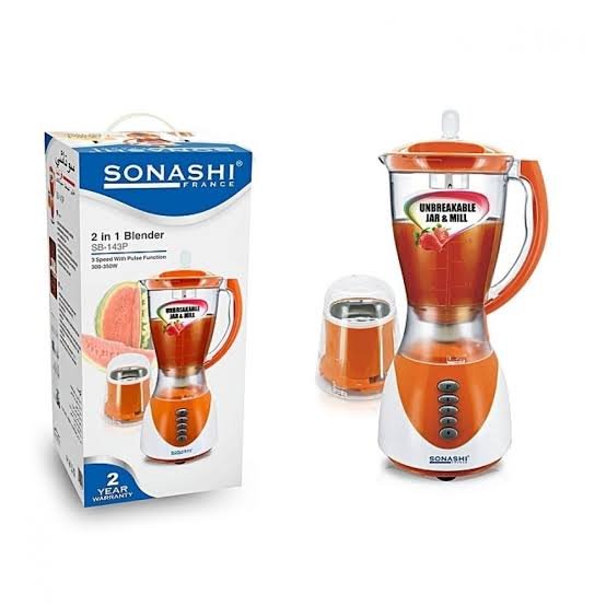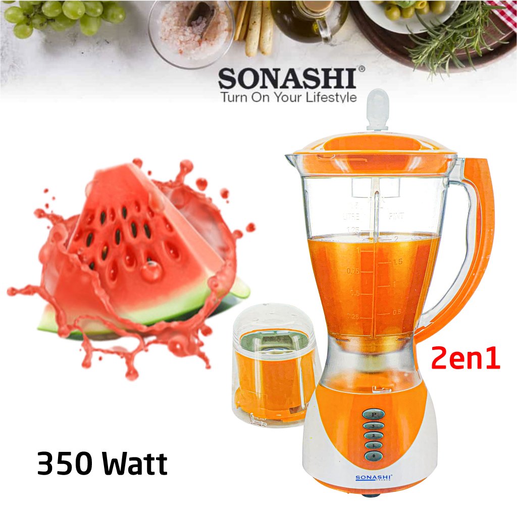 خلاط العصير السريع 2في1 من سوناشي مع مطحنة للتوابل والحبوب مزود بثلاث سرعات مختلفة SONASHI Electric Blender 2en1 Avec Moulin 350W