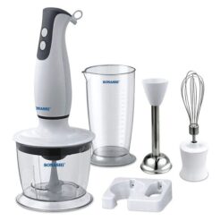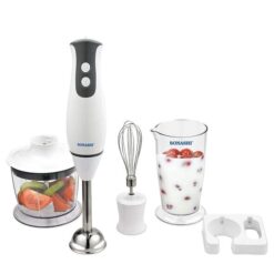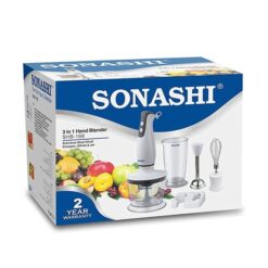 أنت بحاجة لجهاز يساعدك في مختلف المهام في المطبخ؟ لا حاجة للبحث كثيرا فخلاط سوناشي الكهربائي سيصبح من دون شك إحدى الأدوات الاساسية في مطبخك، يؤدي ثلاث وظائف مختلفة: الطحن، الخلط والتقطيع، كما يمنحك أداء مثالي وفعالية عالية للقيام بمختلف الوظائف بفضل محرك قوي بسرعتين و شفرات من الإينوكس المقاوم للصدأ.