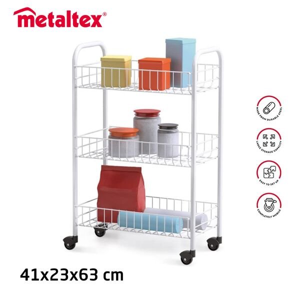 سلة الرفوف مع عجلات لترتيب وتنظيم الأغراض للحمام المطبخ أو المكتب Chariot A Roulette de cuisine METALTEX