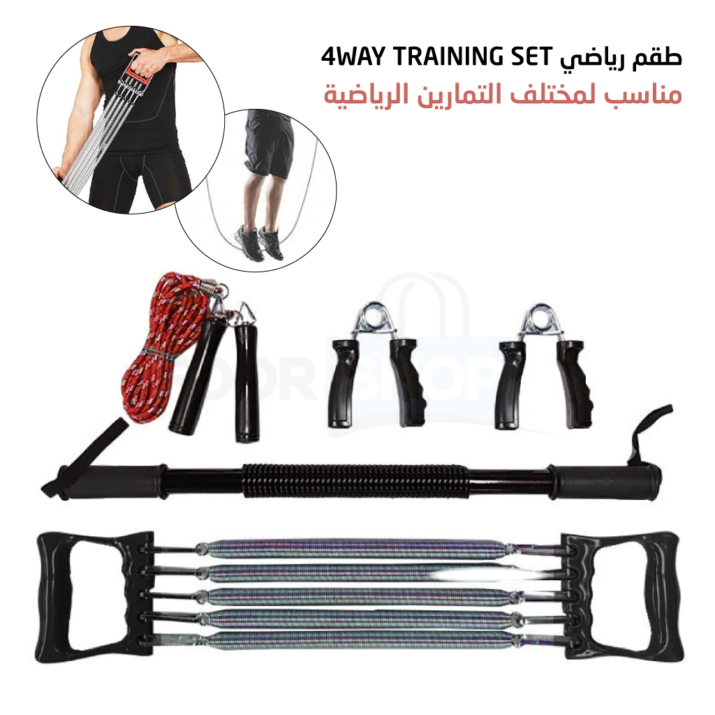 طقم رياضي مناسب لمختلف التمارين والتدريبات للرجال والنساء 4 Way Training Set chest expander- jump rope- hand grips – spring action power