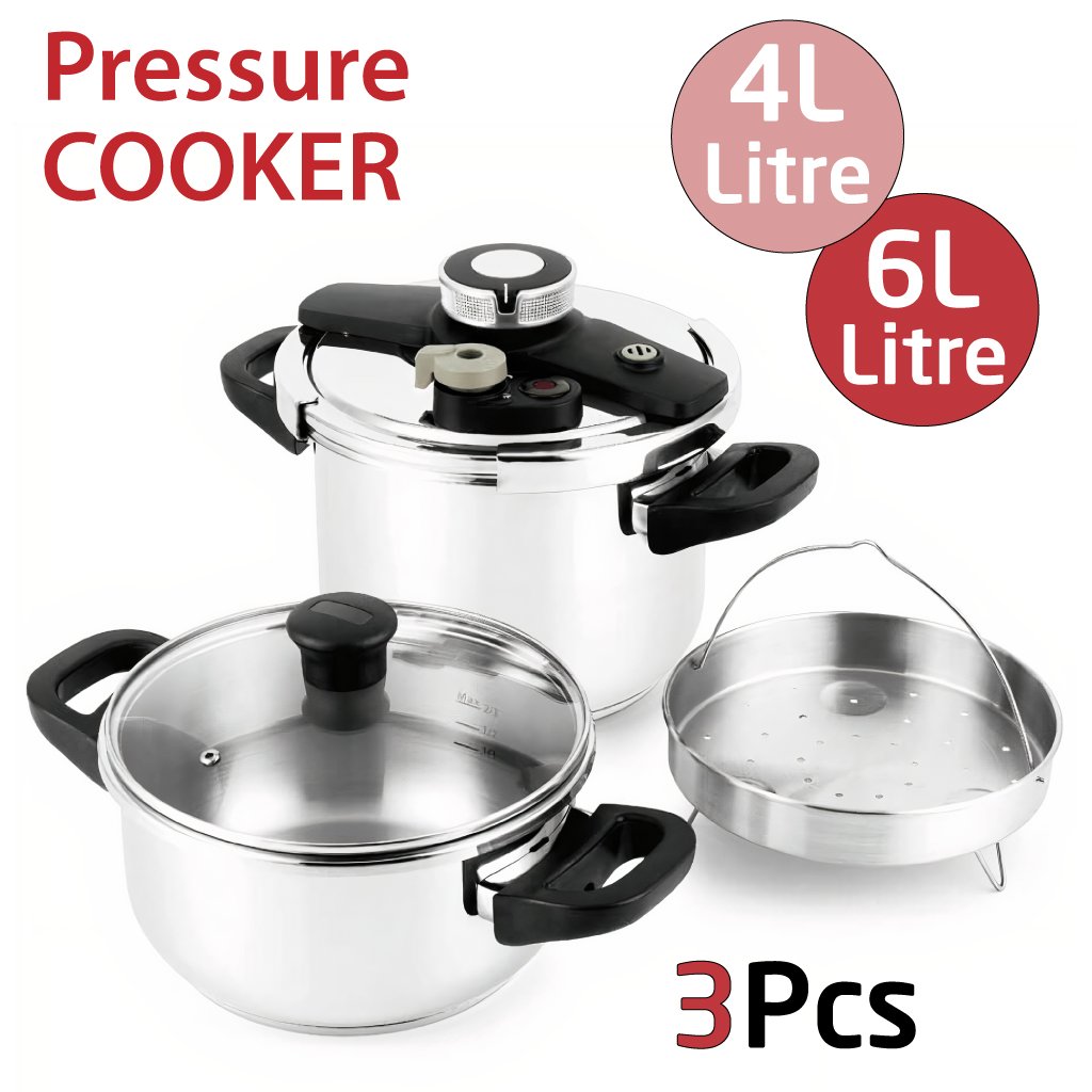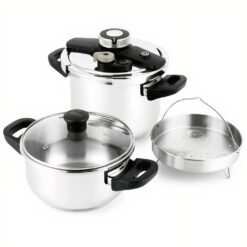 طقم طنجرة 2في 1 طنجرة ضغط و طهي 6+4 لتر من الإينوكس ELSEB Ensemble De Cocotte Minute Et Marmite 6+4L