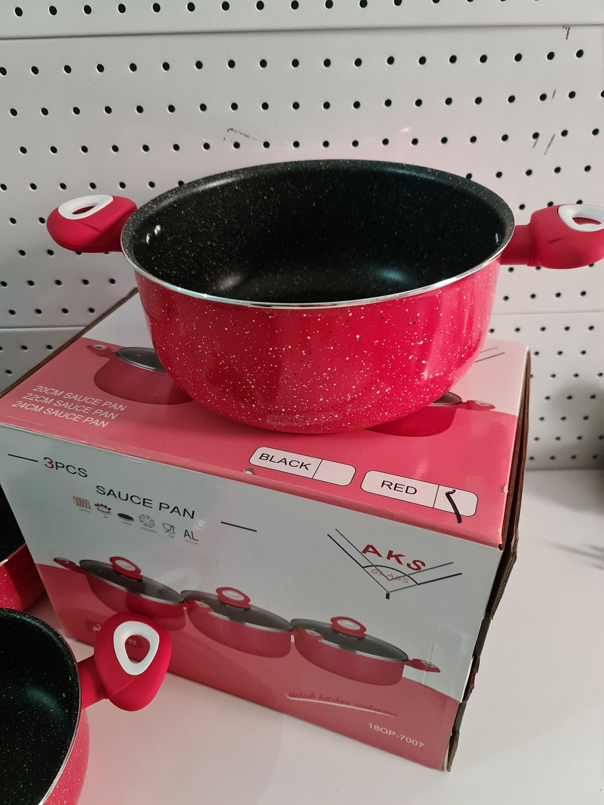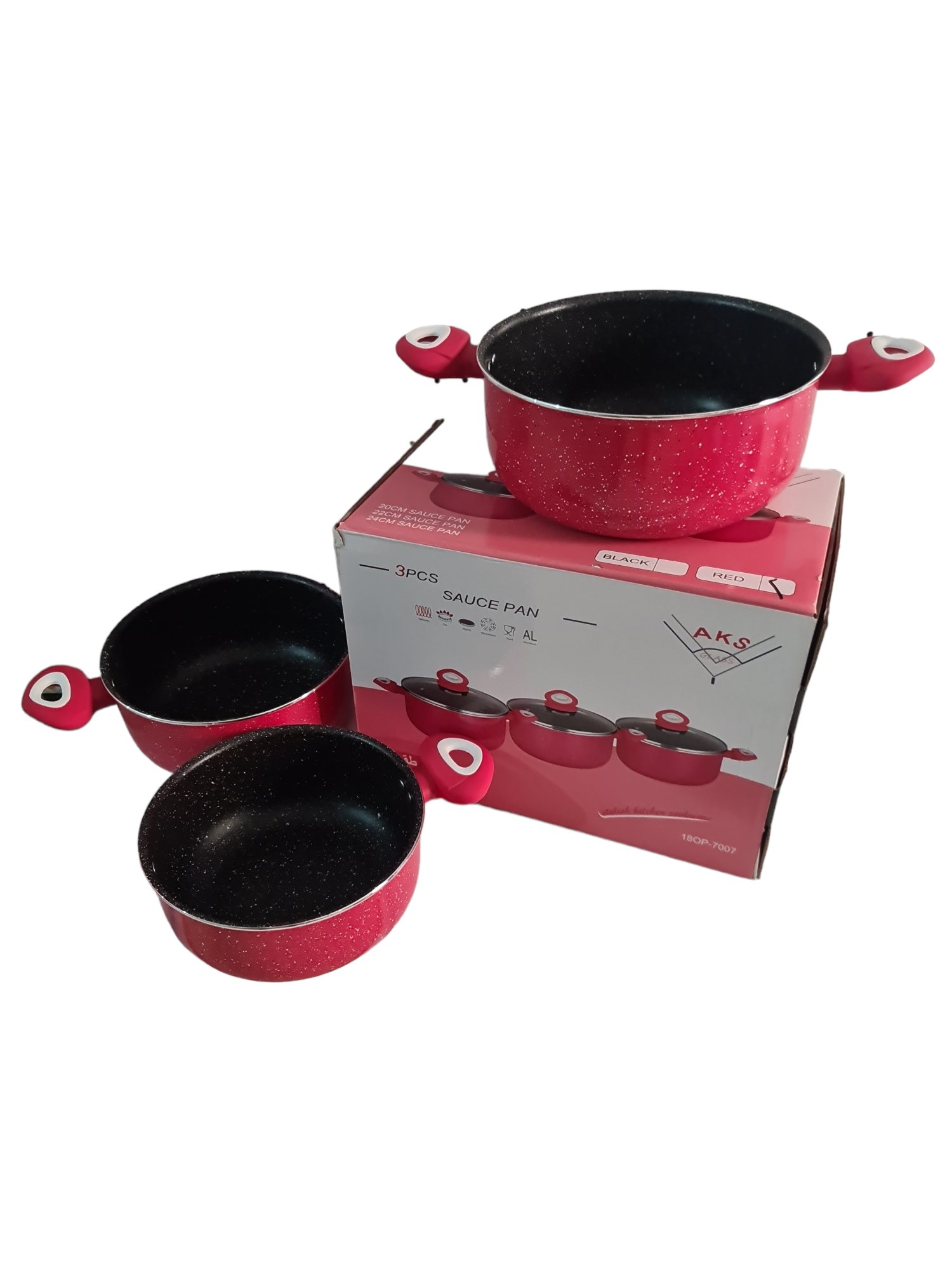 طقم 3 طنجرات مضادة للالتصاق مع أغطية زجاجية جودة عالية AKS Pack de 3 Marmite Anti-Adhérente En Aluminium