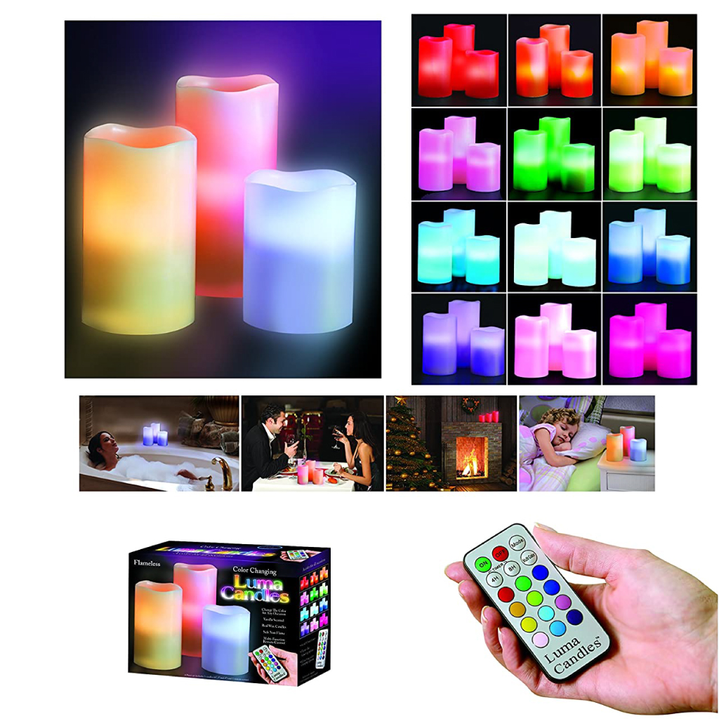 نقدم لك الشموع الكهربائية الحصرية بفضل تصميمها المميز، حيث تظفي جو مميز لأي محيط بأضواء جذابة يتغير لونها تلقائيا. تأتي مع جهاز تحكم عن بعد للتحكم في ألوان وأوضاع التوهج. أضيفي بعض الألوان الباهية إلى منزلك ومحيطك الخاص.