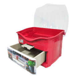 مجفف أواني مع درج للتنظيم.