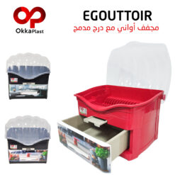مجفف أواني مع درج للتنظيم.