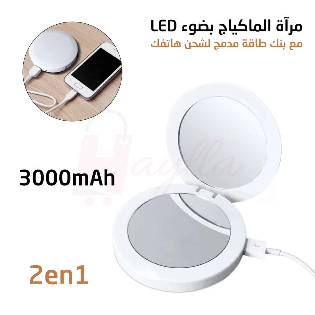 مرآة مزدوجة مع جهة مكبرة بـ 5 أضعاف وبنك للطاقة لشحن هاتفك في أي مكان Miroir Double Face de Sac a Main Avec Power Bank 3000mAh