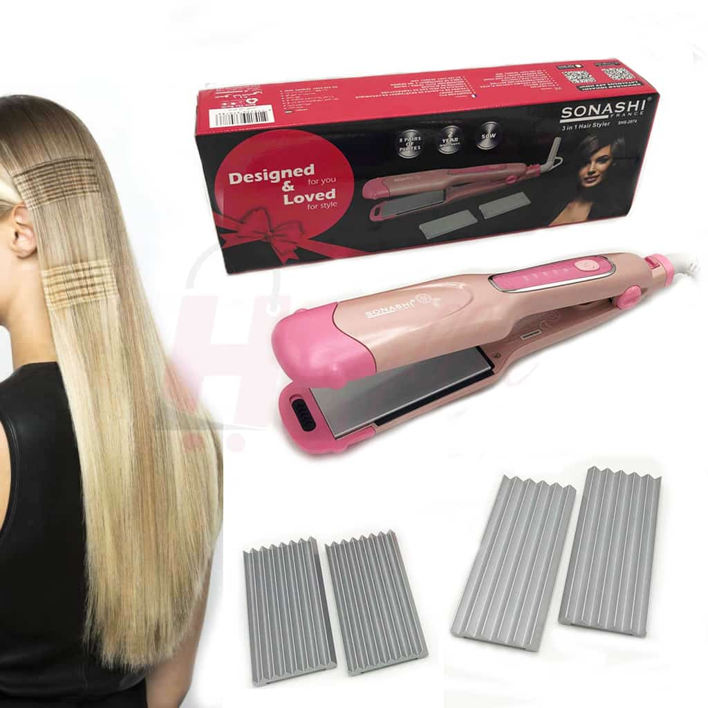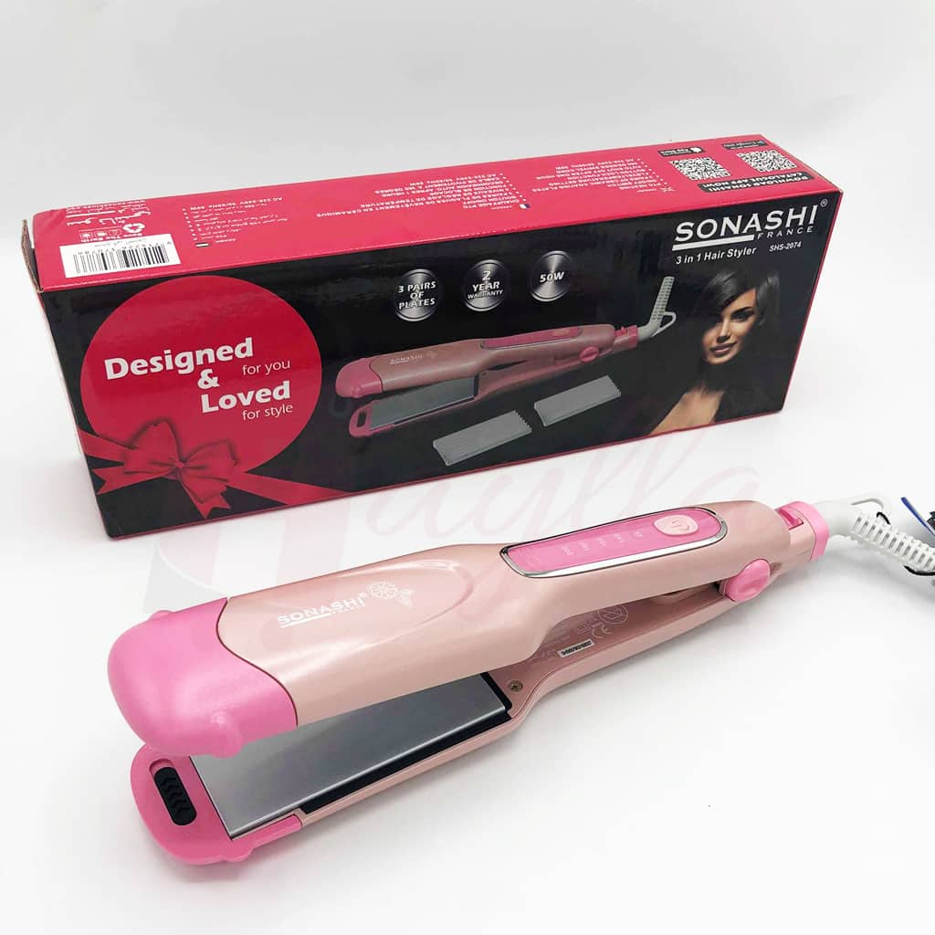 مكواة تمليس و تجعيد الشعر 3 في 1 لترطيب و تمليس شعرك Sonashi 3en1 Curler Fer À Friser et Fer A Lisser Styler SHS-2074