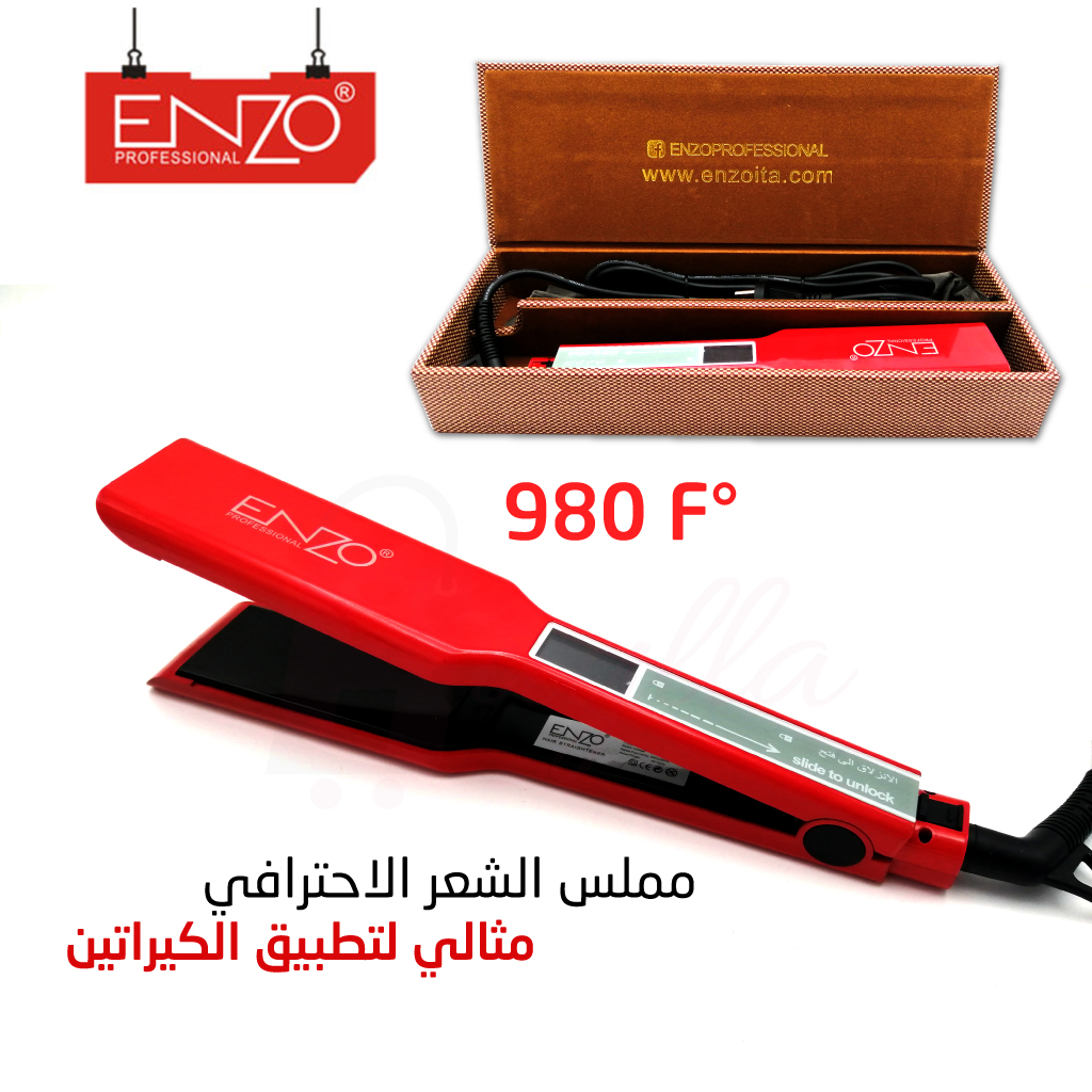 عملية تمليس شعرك ستكون أكثر سهولة وفعالية الان مع مملس الشعر الاحترافي من Enzo دون عناء التنقل الى صالونات الحلاقة، مصنوع من صفائح السيراميك الفعالة والمناسبة لجميع أنواع الشعر، كما يتيح لك تعديل درجات الحرارة بسهولة بفضل شاشة LCD ليمنحك نتائج مبهرة واطلالة رائعة.